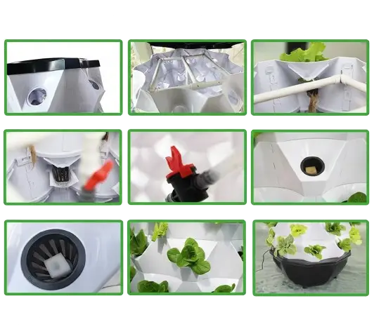 Sistema profesional de cultivo tipo torre diseñado para producción doméstica o comercial de vegetales y hierbas sin uso de tierra. Fabricado en PVC grado alimenticio, con riego por recirculación y bomba integrada, permite obtener cosechas limpias, rápidas y uniformes durante todo el año.